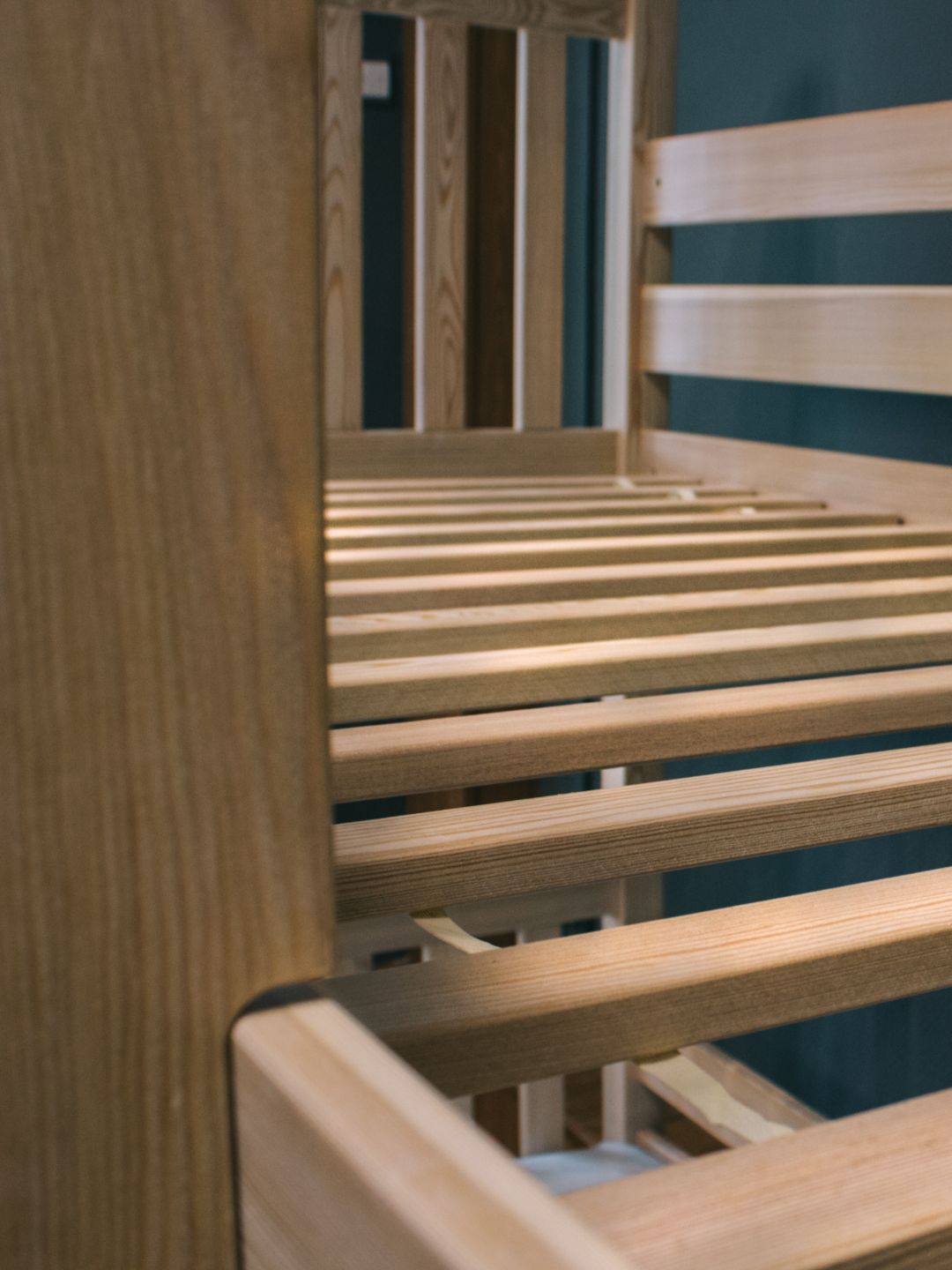 Кровать выполнена из лиственницы. Лиственница по своим свойствам превосходит сосну и березу и сравнима с дубовым массивом.